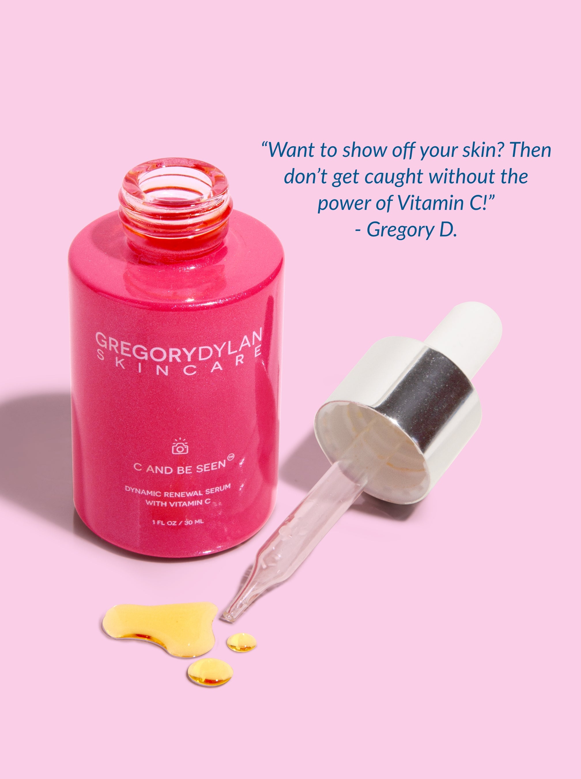 Want to show off your skin? Then don’t get caught without the power of Vitamin C! C and Be Seen ™ Dynamic Renewal Serum works to smooth texture, soften the appearance of fine lines and reduce dark spots all while working to promote collagen and give superior anti-oxidant protection. Stable and time-released L-Ascorbic Acid is spiked with Ferulic Acid to strengthen and stabilize, Vitamin E to buffer and CBD to calm. Add in super-powered, free-radical fighting anti-oxidants from berries and you’ll be singing the praises of this skincare superstar in no time!